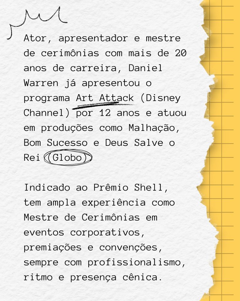 DANIEL WARREN é ator, apresentador e mestre de cerimônias.