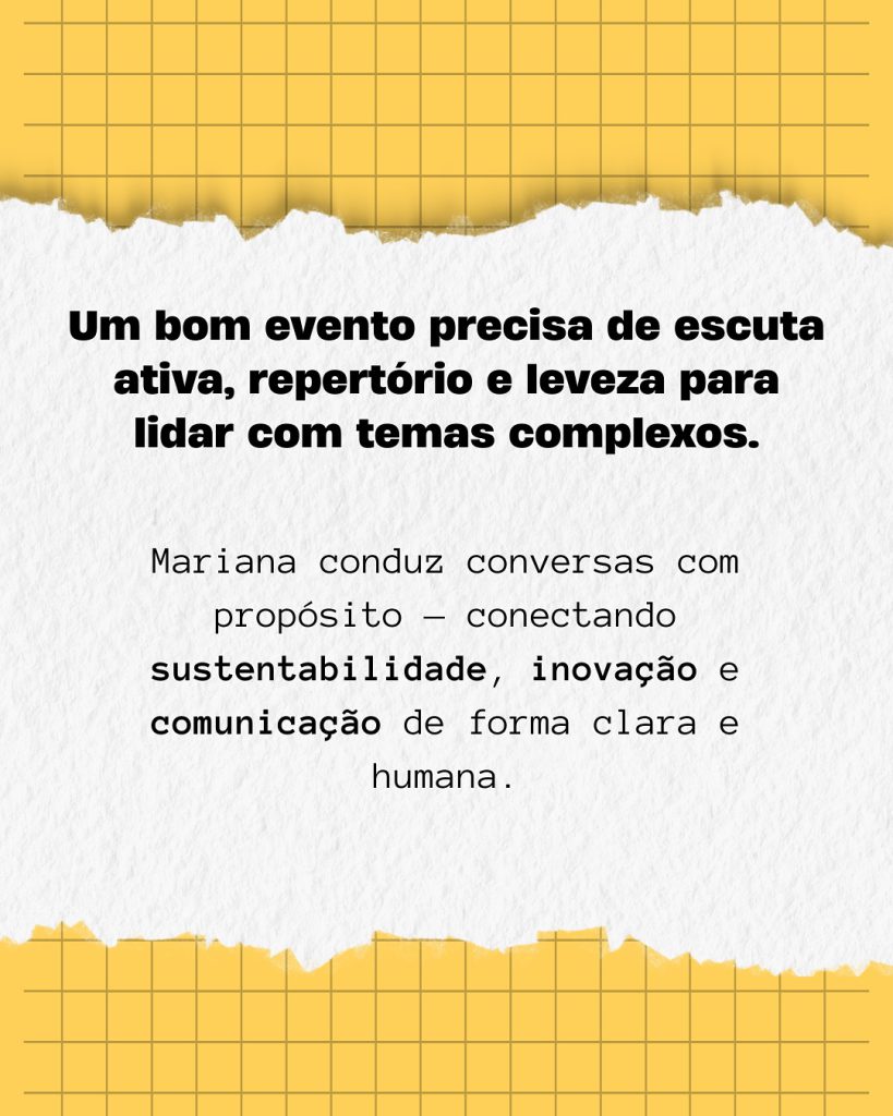 A jornalista também está à frente de podcasts voltados à COP 30, lidera ações de media training, e é head de comunicação em projetos corporativos voltados à sustentabilidade.